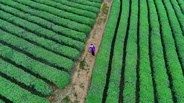 在明媚春光的映襯下,翠綠的茶樹依山勢(shì)蜿蜒起伏,漫山遍野,美不勝收,今年的長康蘭嶺青青茶園顯得分外迷人。清明前后,天氣放晴,茶樹芽頭不斷吐綠,現(xiàn)在正是采茶的好時(shí)候。