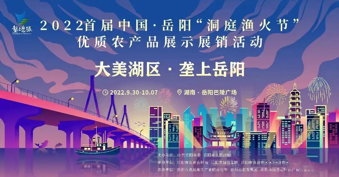 為弘揚(yáng)中華農(nóng)耕文明,致敬農(nóng)民、禮贊豐收,營造喜慶豐收、共迎黨的二十大勝利召開的濃厚氛圍,2022首屆湖南·岳陽“洞庭漁火季”優(yōu)質(zhì)農(nóng)產(chǎn)品展示展銷活動將于9月30日-10月7日在巴陵廣場舉辦。